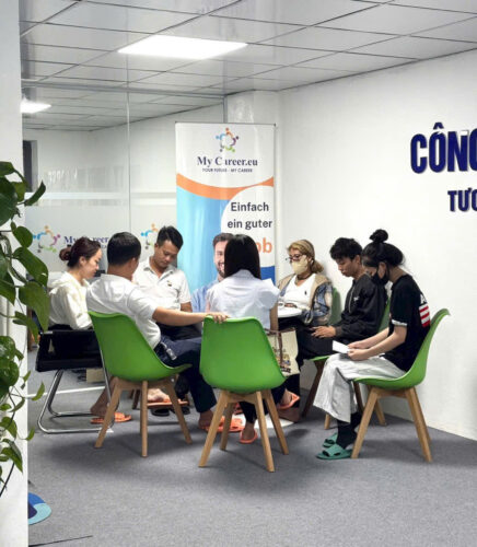 Sáng nay, dù mới tinh mơ, khách hàng đã có mặt tại văn phòng My Career.eu để đăng ký thủ tục đơn hàng dài hạn đi Đức 🇩🇪.