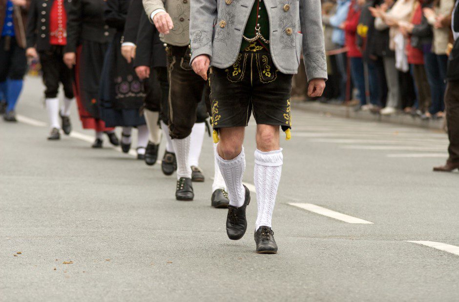 The most famous version of this outfit also comes with a crop top, knee-high white socks, and a blazer. The whole look actually looks pretty cool, and your best bet for seeing it would be Munich’s annual Oktoberfest , where you’ll stick out like a sore thumb in casual clothes.