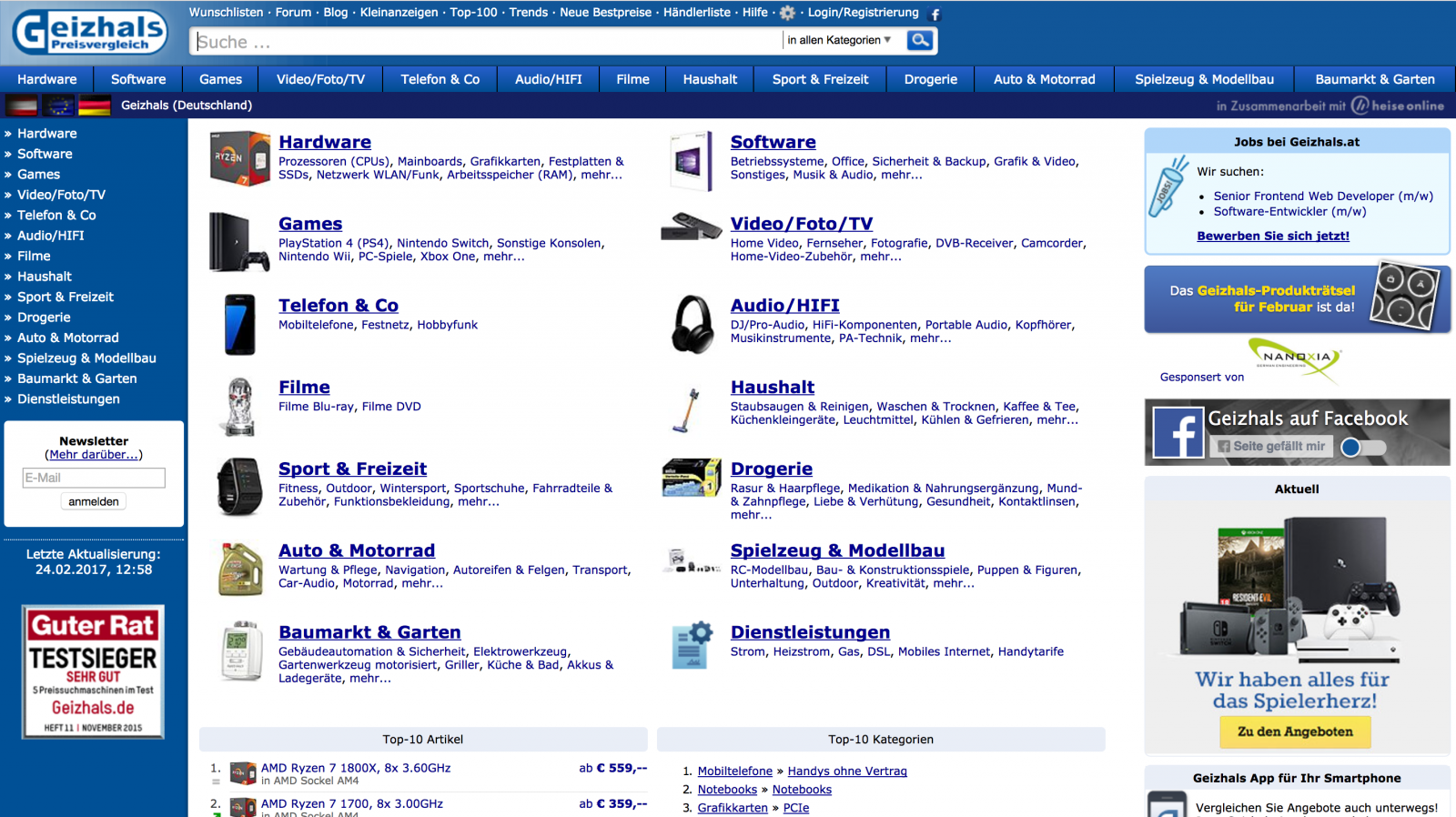 Starting as a hobby project in 1997, after it gained popularity, Geizhals quickly became a leading price comparison website in Germany since 2001. It is currently operated by Preisvergleich Internet Services AG, a company based in the Austrian capital Vienna, part of the Heise Gruppe (since 2014).