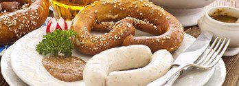 Weisswurst is a traditional sausage from southern Germany, or more precisely the state of Bavaria. The main ingredients are ground veal and salted pork along with other spices typical of the state. When eaten, it will be eaten with sweet mustard and Brezel twisted bread.